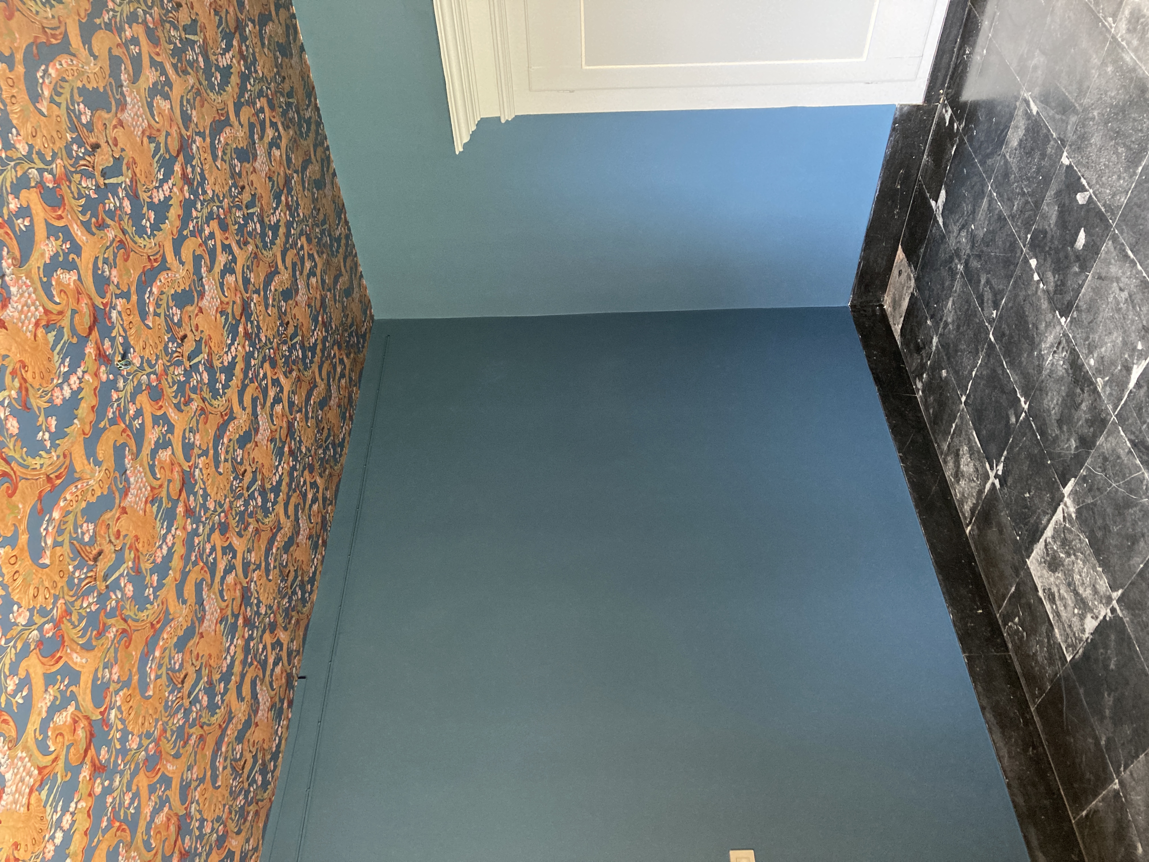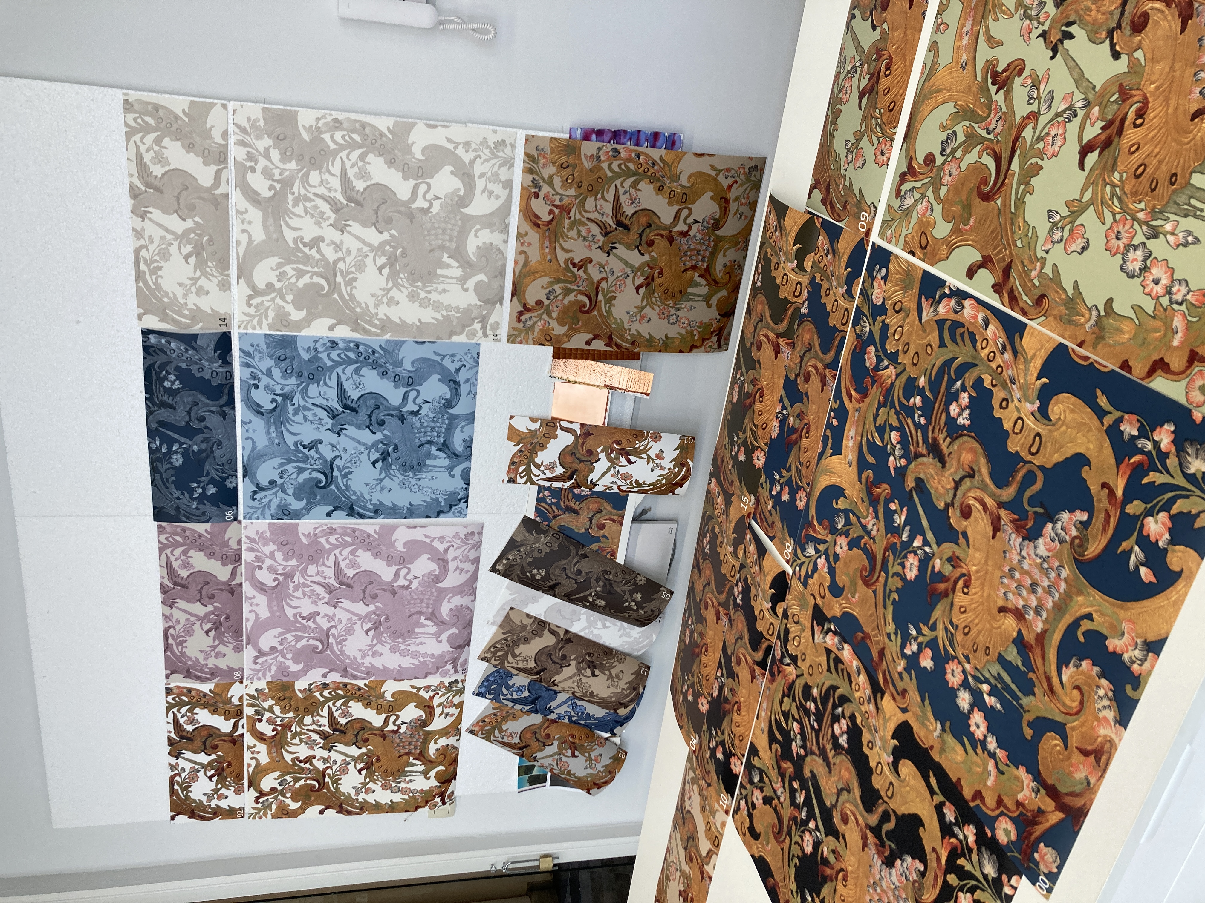 Atelier Billiet reconstructed the missing parts of the repeat and reproduced the design as a wallpaper to adorn the ceiling of the 'Wunderkamer' in the center of the exhibition.